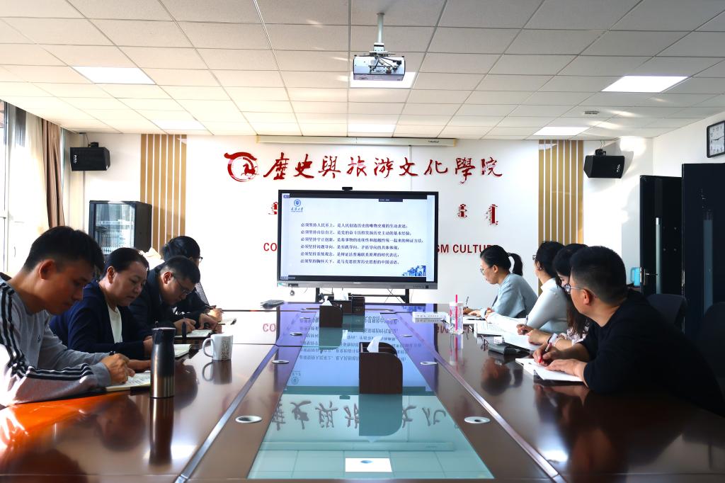 为深入学习贯彻习近平新时代中国特色社会主义思想,认真落实《关于全区教育系统认真组织学习〈习近平谈治国理政〉第五卷的通知》要求,10月21日上午9时,我院召开党委理论学习中心组第十三次学习会,集中收看“全区高校学习贯彻《习近平谈治国理政》第五卷集体备课会”直播。学院全体中心组成员参加学习。