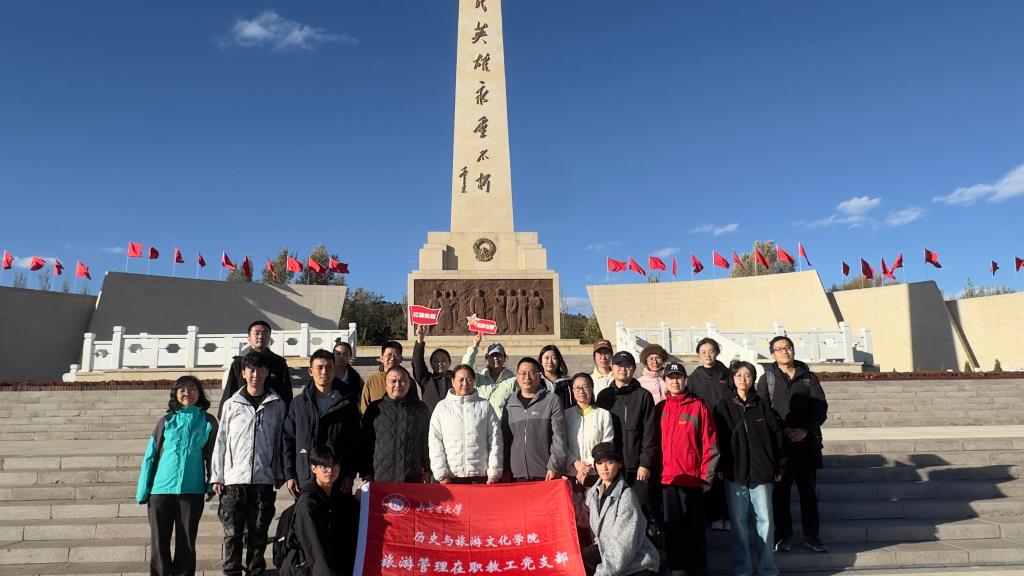 2025年10月25日,内蒙古大学历史与旅游文化学院黄大年式教师团队党支部与旅游管理在职教工党支部联合开展“赓续红色血脉·砥砺育人初心”主题党日活动,赴大青山红色文化公园进行沉浸式红色文化教育。学院党委书记娜仁,院长李德锋,党委副书记卫银栋及二十余名党员同志共赴现场,在大青山红色文化公园同上一堂“行走的思政大课”。