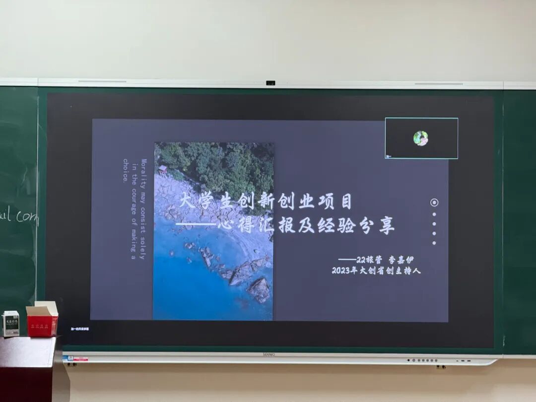 2022级旅游管理专业的李嘉伊学姐因事未能到场,为学弟学妹们精心录制了一段满含干货的指导视频。在视频中,学姐对大学生创新创业训练计划中的创业赛道进行了系统讲解,深度剖析了自己项目的内容,每一处点拨都为我们今后开展学术研究提供了借鉴。