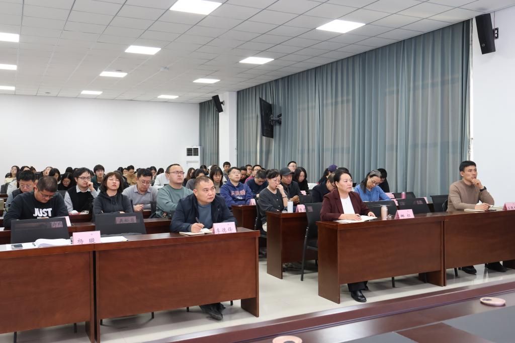 2025年12月24日下午3时,我院组织召开专题报告会,进一步全面深入学习领会党的二十届四中全会精神。学院全体教师及学生党员参加会议,报告会由学院党委书记娜仁主持。