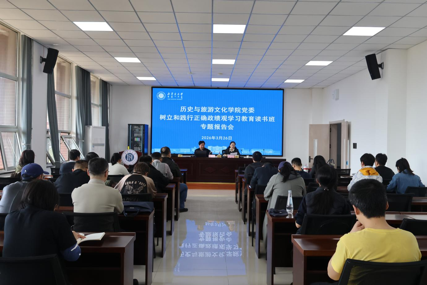 为扎实推进树立和践行正确政绩观学习教育,根据学校党委统一部署,3月26日—27日,历史与旅游文化学院举办树立和践行正确政绩观学习教育读书班。