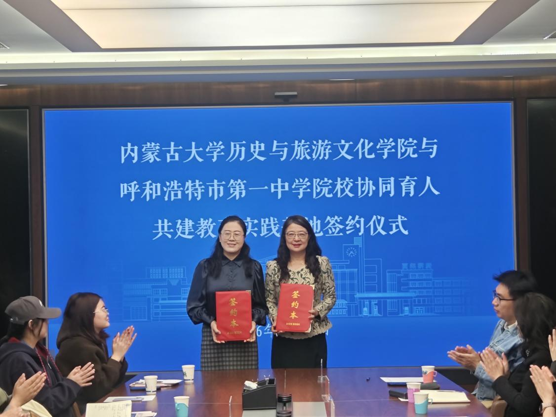 在全体与会人员的共同见证下,学院党委副书记(主持工作)王丽与呼和浩特市第一中学校长于秀娟共同签署教育实践基地共建协议,标志着双方在协同育人与实践教学方面的合作迈入新阶段。