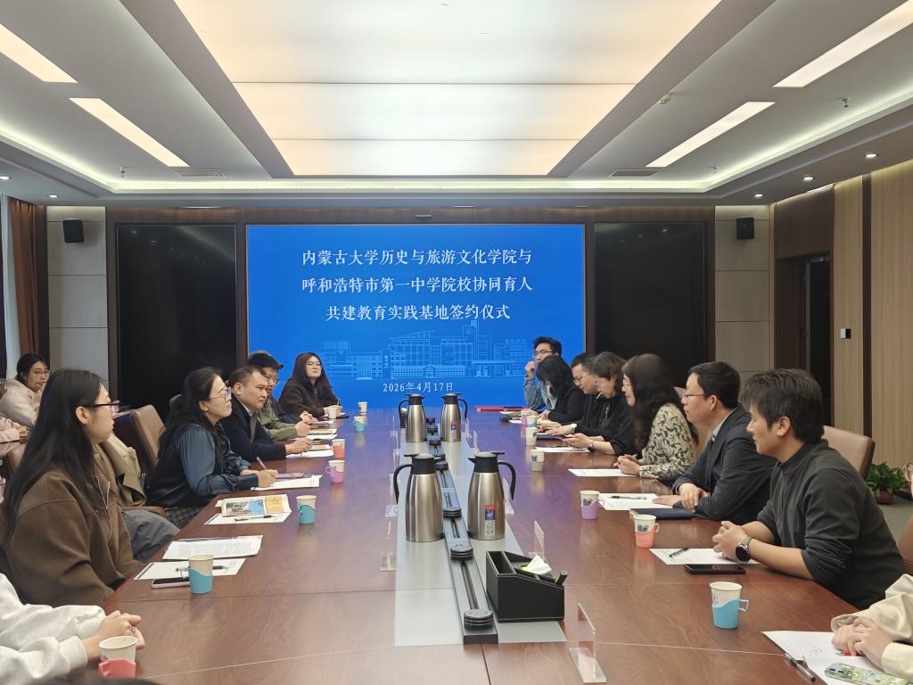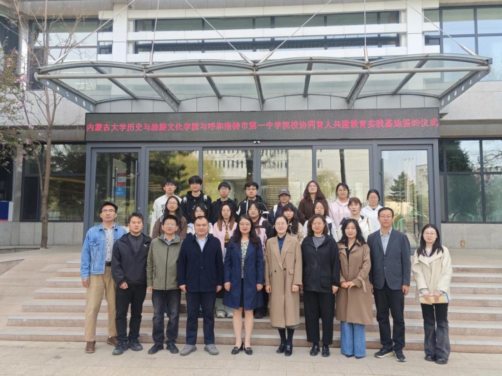 4月17日上午,内蒙古大学历史与旅游文化学院赴呼和浩特市第一中学开展交流座谈,并举行教育实践基地签约仪式。学院党委副书记(主持工作)王丽、院长李德锋、历史系主任王星晨、团委(学工办)书记(主任)陈迪,以及15名历史专业本科生、中国史专业研究生参加活动。呼和浩特市第一中学校长于秀娟、副校长李轶、党政办公室主任李燕飞及相关负责人出席仪式。