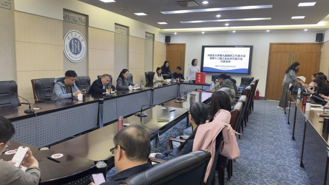 2026年4月23日下午,按照校工会统一安排部署,历史与旅游文化学院在赛罕校区学术会议中心3号会议室,召开“内蒙古大学第九届教职工代表大会暨第十二届工会会员代表大会”代表选举大会,圆满完成学校“双代会”代表选举工作。会议由学院党委副书记(主持工作)王丽主持。