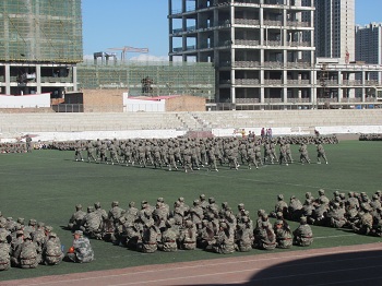 历史与旅游文化学院2014级新生参加军体拳会操表演